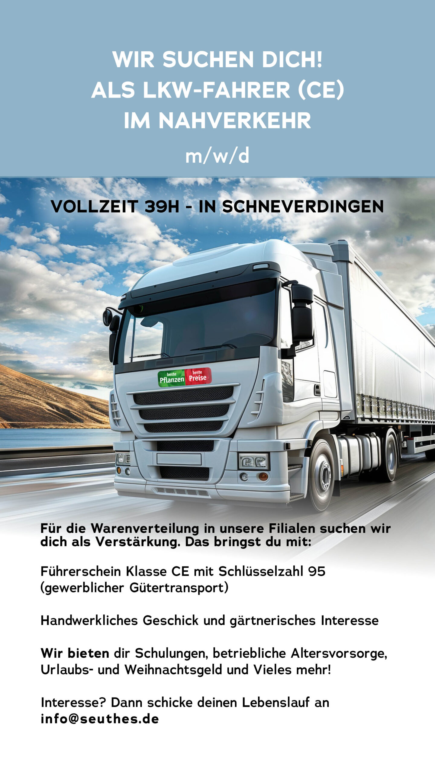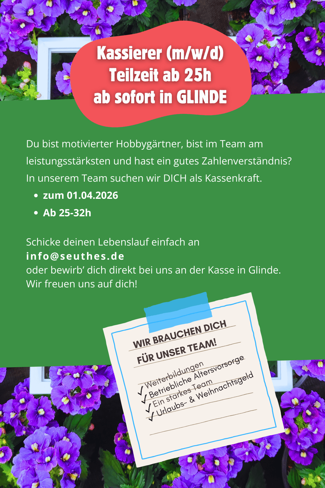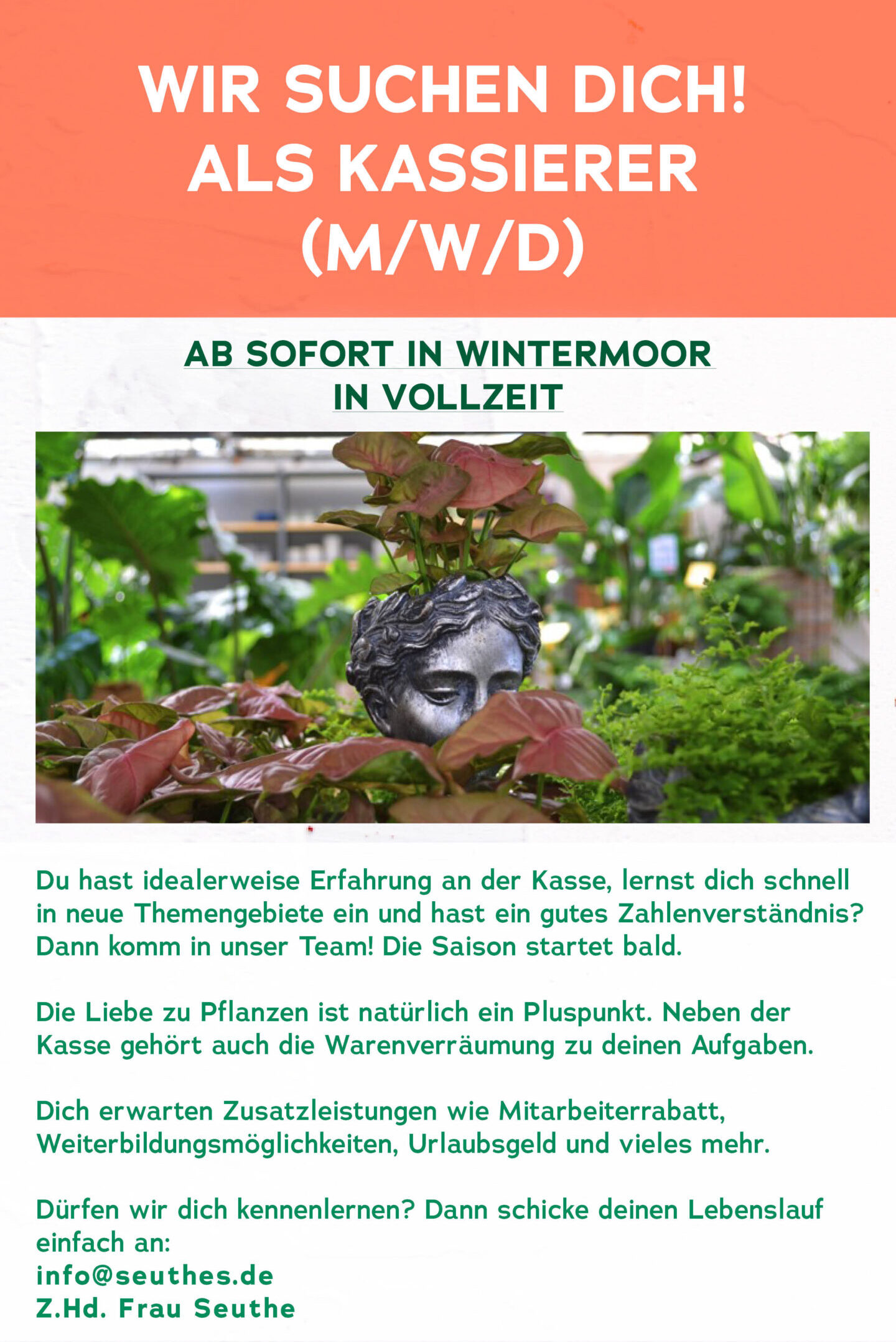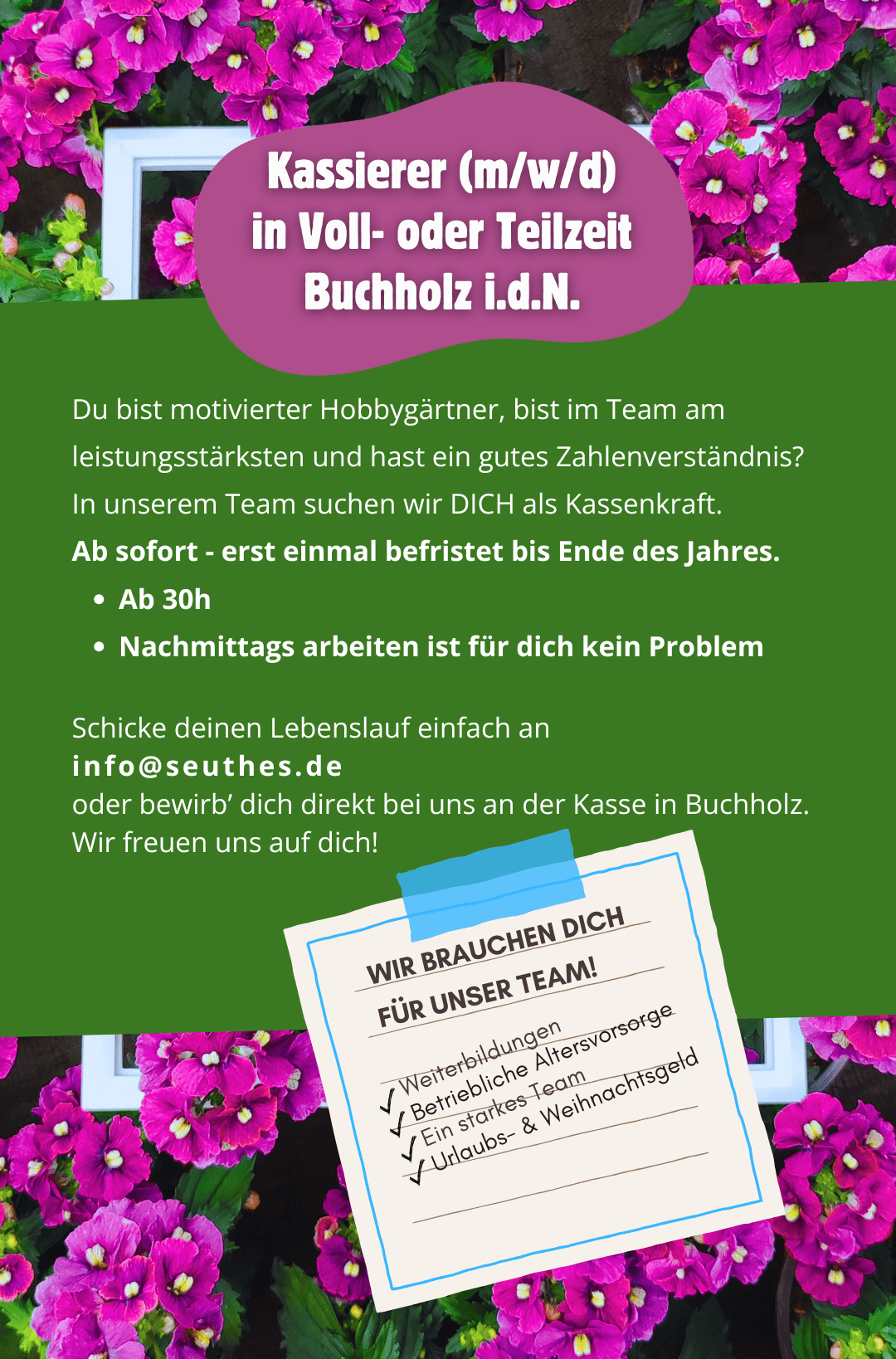 Bewirb dich und werde ein Teil von unserem Team! Alle Bewerbungen gerne per Mail an info@seuthes.de oder per Post: Seuthes GmbH & Co. KG –